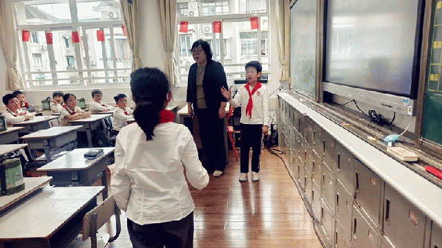 在“文明的点拨”环节,老师通过校园生活中的真实场景——排队礼让、弯腰捡纸屑、倾听与表达、悄悄话信箱等,深入浅出地阐释了文明礼仪的具体内涵。老师特别以古诗《游园不值》中“小扣柴扉”的典故,以及《悯农》诗句延伸出的“勤拿少取”节约理念,引导同学们将经典诗词转化为具体行动口令,在传统文化的浸润中领悟谦恭有礼、尊重他人、珍惜粮食的中华美德。